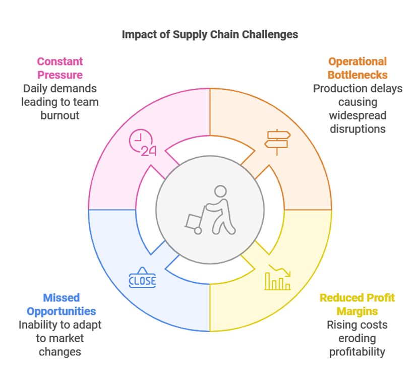 Constant Pressure: Without a data-driven approach, businesses struggle to keep up with day-to-day supply chain demands. This pressure can lead to burnout and inefficiency, especially in smaller teams.